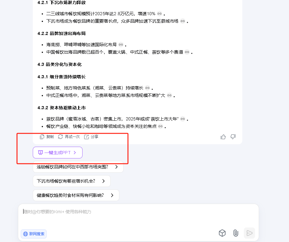 一、deepseek+Kimi=一键生成PPT首先,做PPT堪称所有打工人的噩梦,现在只需要deepseek+Kimi,1分钟就可以干完一天的活!