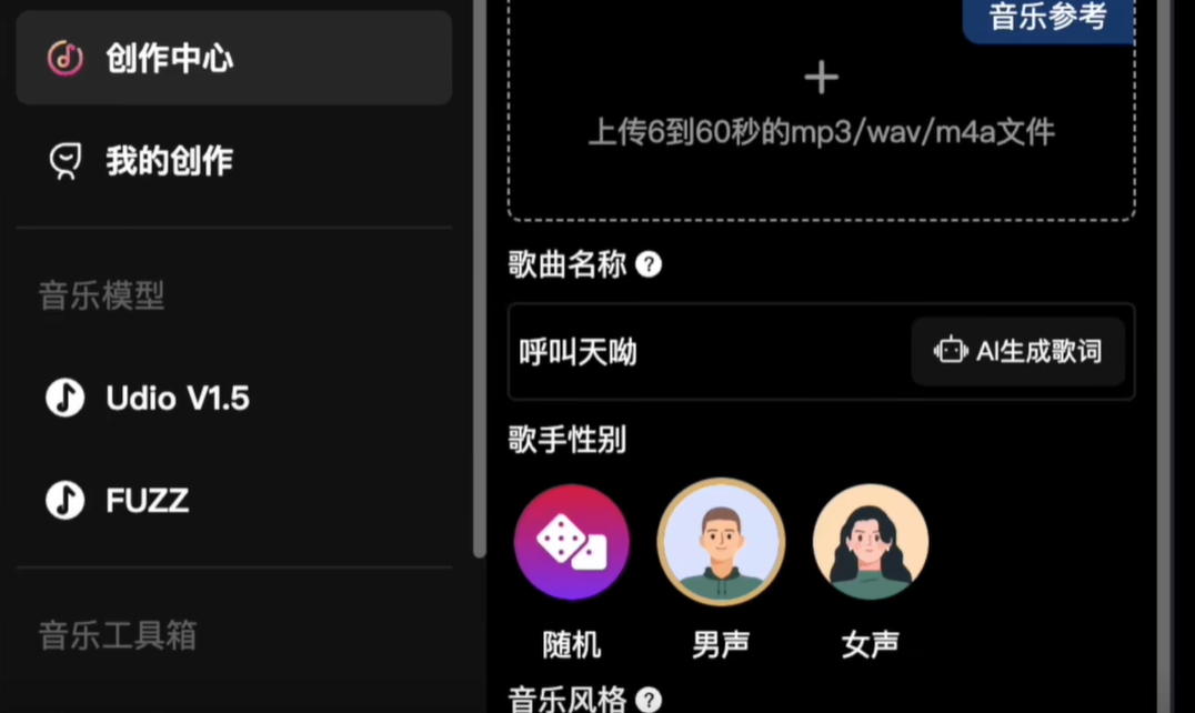 2、将想法输入Suno或类似的AI音乐生成工具。