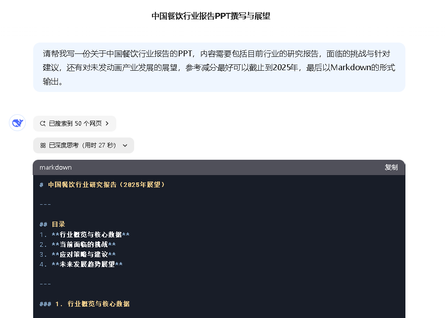 3、复制 DeepSeek 生成的 Markdown 内容。