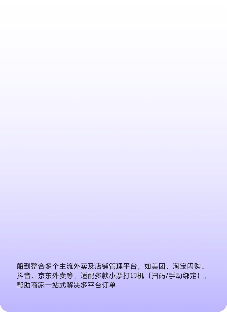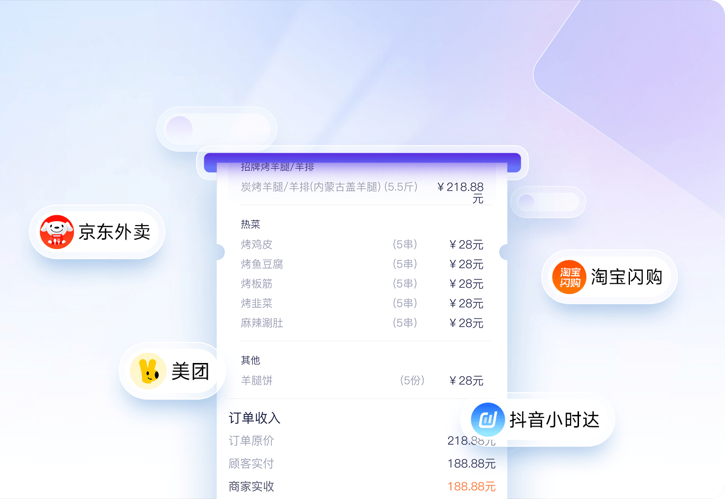 功能,通过整合美团、淘宝闪购、抖音等订单平台,帮助商家一站式解决多平台订单!