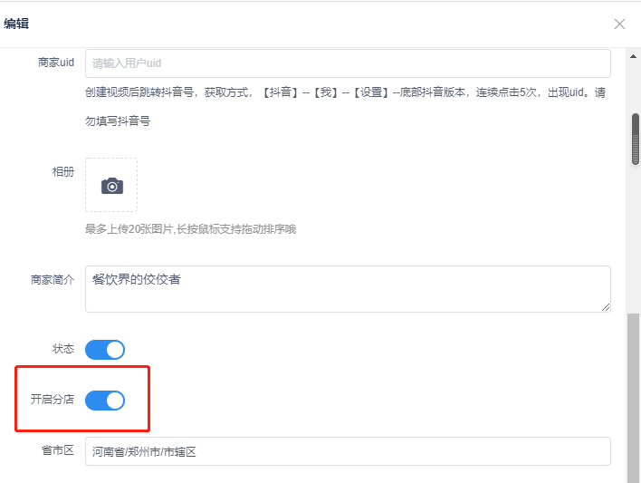 商家可开启连锁店功能注意:连锁店铺共用条数和视频素材