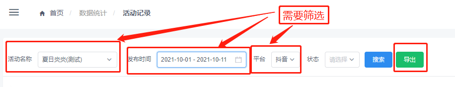 活动记录支持导出,可导出表格文件到桌面以查看视频的各项数据
