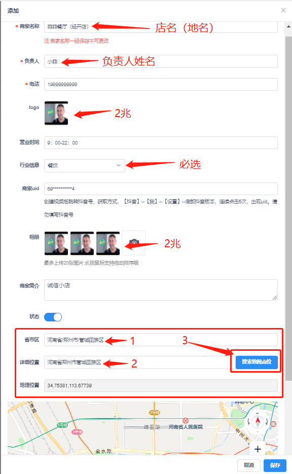 · 编辑:后期点击编辑可修改商家信息(商家名称除外)