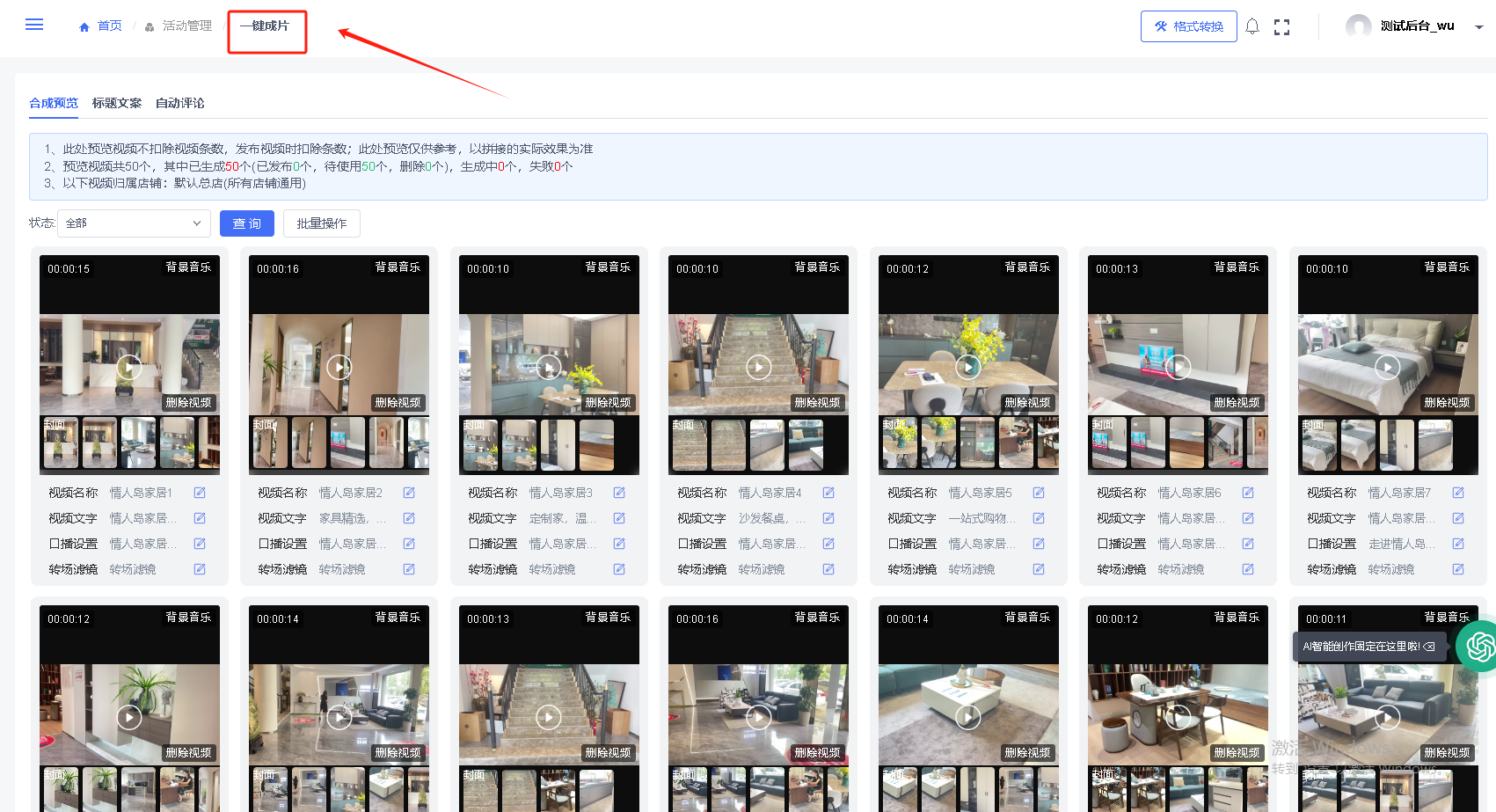 1套素材:小魔推矩阵营销的逻辑就是利用批量的门店视频素材,形成新的门店宣传的视频。再利用小魔推的一键成片功能,批量剪辑素材,比如30个素材片段就能