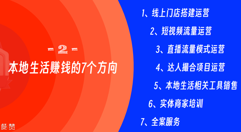 除了以上,大鑫老师还讲了其他三种赚钱方向及运营方法(达人撮合项目运营、本地生活相关工具销售、全案服务),在这里就不一一向大家赘述了。