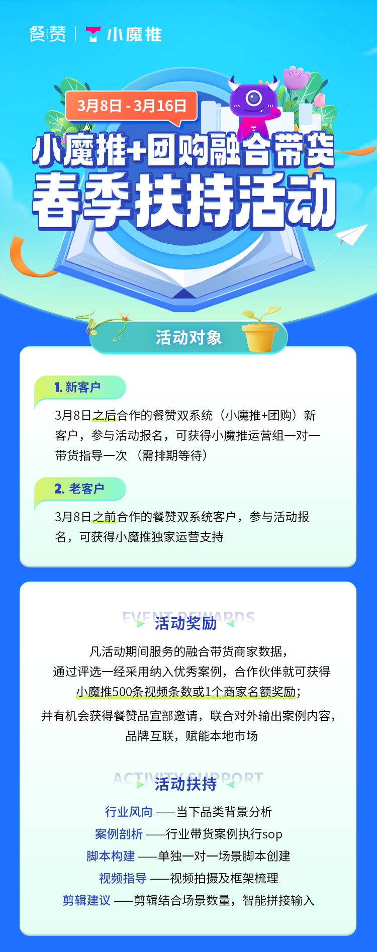 小魔推+团购融合带货春季扶持活动开展以来,已有合作伙伴服务的商家实现带货400+单!