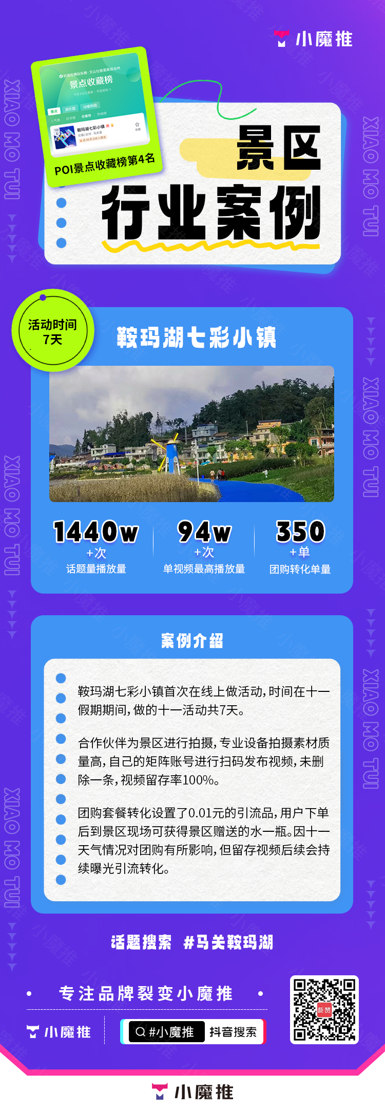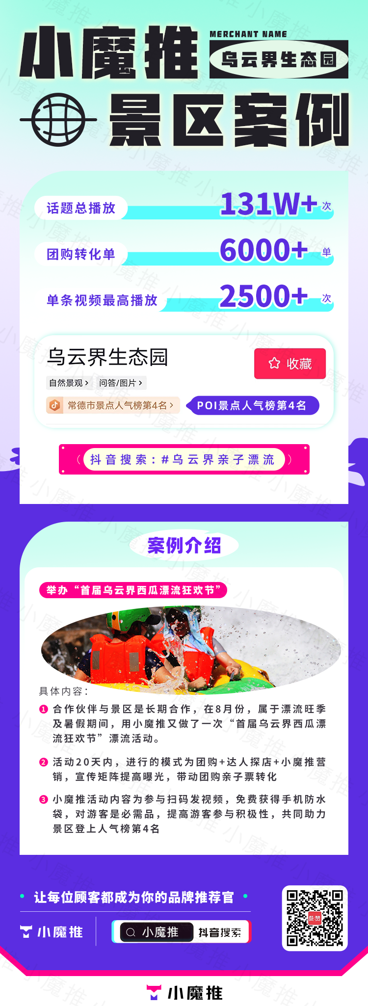 小魔推所服务的文旅景区类别已很多样,包括花海、儿童乐园、亲子乐园、水上乐园、大型游乐场、风景名胜、度假村、动物园......所塑造的战绩也不在话下。