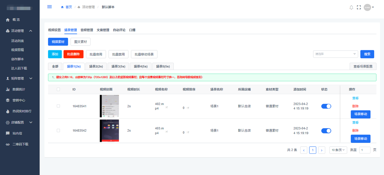 小魔推后台素材库,支持固定场景随机截取,可以在上传的素材内,随机选取指定时长的片段,从而拼接出更加丰富的视频画面内容。