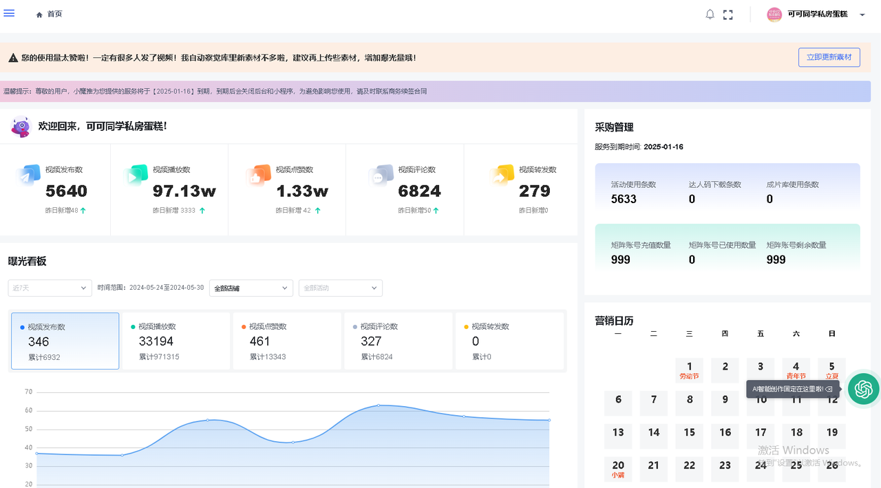 AI智能剪辑工具及矩阵号管理工具共发出5640条视频,一定程度上为商家在公域流量池中打响了知名度,多重曝光使得【可可同学私房蛋糕店】4个月的时间累计GMV突破1000w+!