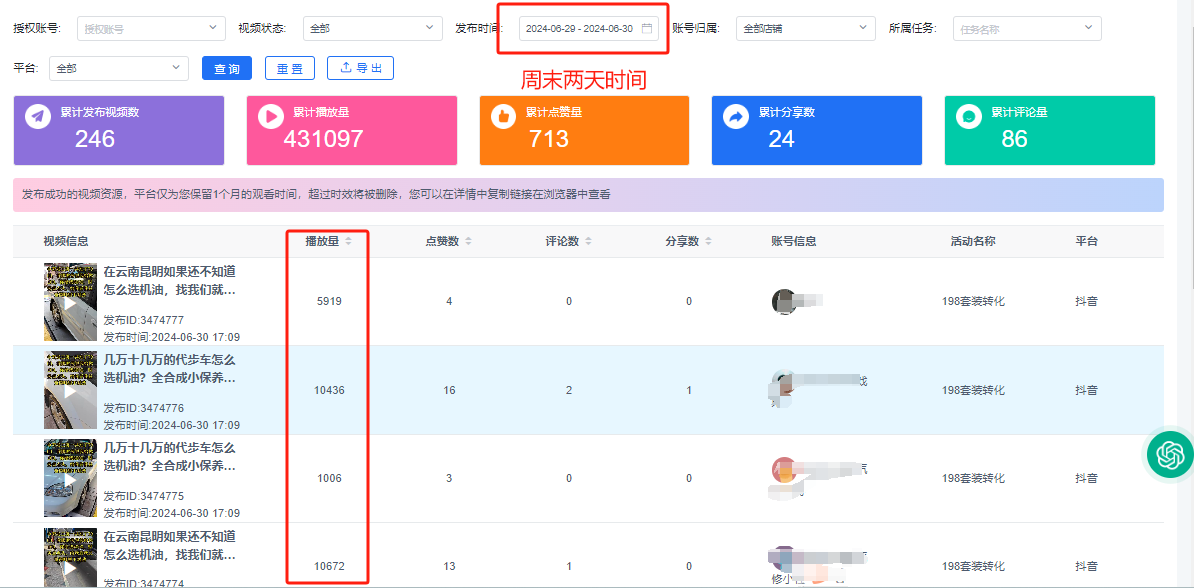 4、以量取胜,长效运营1个账号发布1条视频的播放量虽然可能只有三五百,但1000条视频呢?且每天都可以发布大量的视频,因为成本低且自己可掌控,可以按自己的需求,随时随地想发就发,持续做曝光运营