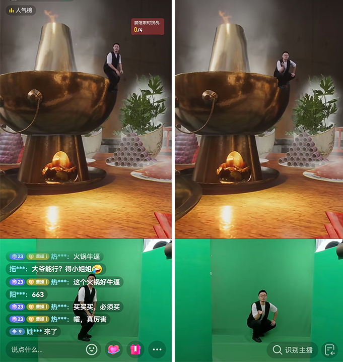 首先,创新上的体验XR通过创新的直播形式,将直播商家的产品与精心设计的虚拟场景结合,为观众带来前所未有的视听体验。比如在月球上直播,雪山上直播、火锅锅里直播、天宫里直播等,靠新奇的场景能第一时间抓住用户的眼球,吸引用户的停留。