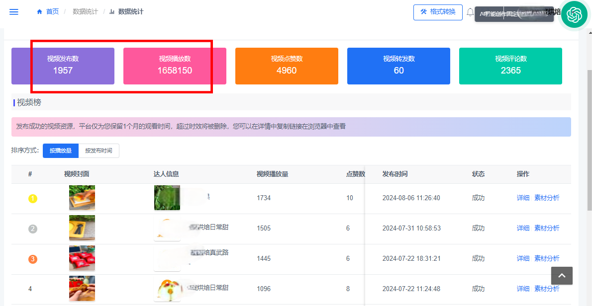 01 快速获得高曝光比如你一天发布100条视频,一条视频的基础曝光量是300-500,那你每天就能获得3万-5万的曝光,一个月就是90万-150万的曝光。