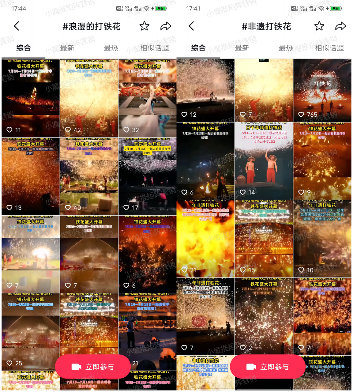 小魔推矩阵营销,让流量全量铺开,景区打铁花,仅发布了389条视频,总播放量就达到43万➕次