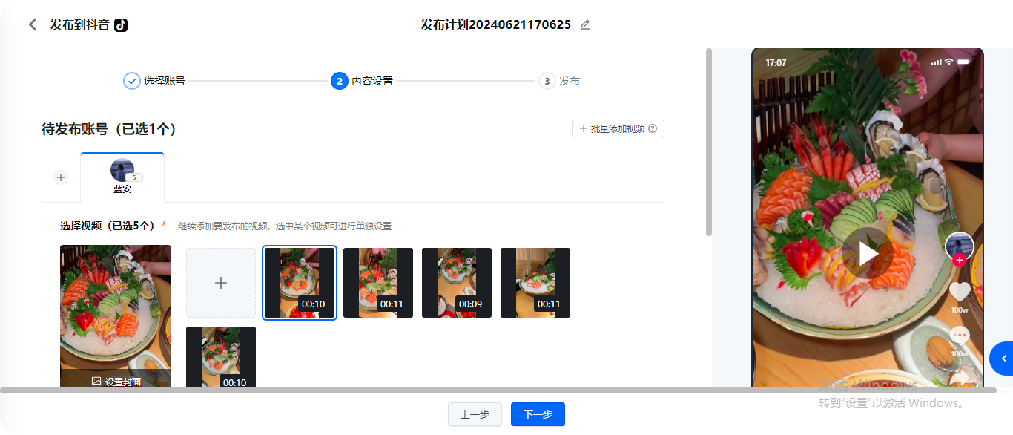 03、矩阵发布剪辑好的视频,可自定义选择要发布的账号、视频,直接发布或者定时发布