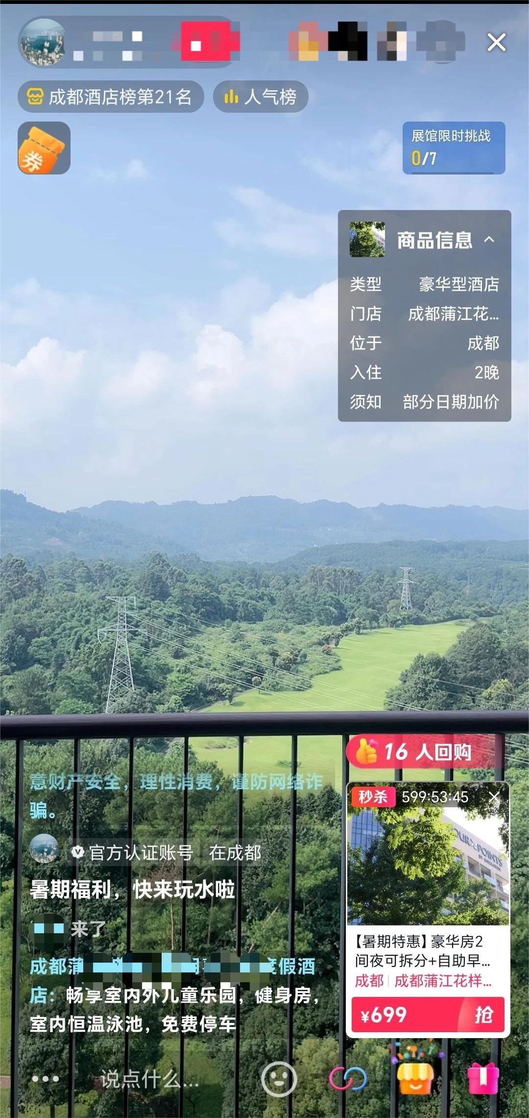 除了拉新拓客外,在短视频平台上直播还可以起到品牌推广、产品展示、活动推广等宣传作用。通过直播,酒店可以与观众进行实时互动,解答疑问,提高客户粘性。同时,抖音直播还具备社交属性,观众可以通过点赞、评论等方式参与互动,进一步扩大酒店的影响力。