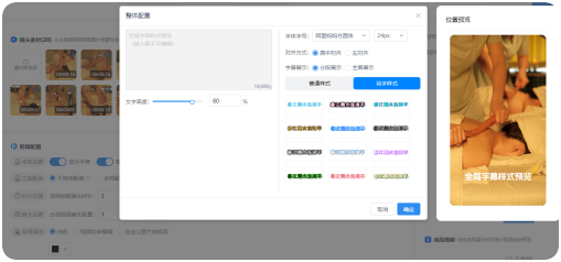 模式二批量混剪:批量上传素材,针对视频内容进行个性化设置,比如字幕设置、配音设置、镜头设置、画面时长设置、背景音乐、标题文案、视频贴纸等