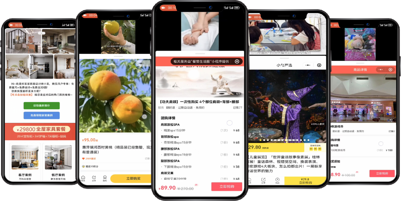 本地生活团购业务中,就是让商家可以以挂载小程序链接、企微群、客服插件链接的形式,在视频号内进行商品上架推广、投流推广,获得商品订单的转化、招商加盟、以及获客留资等。
