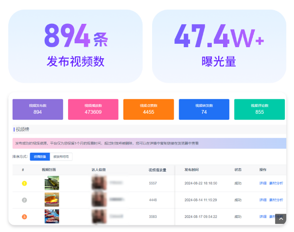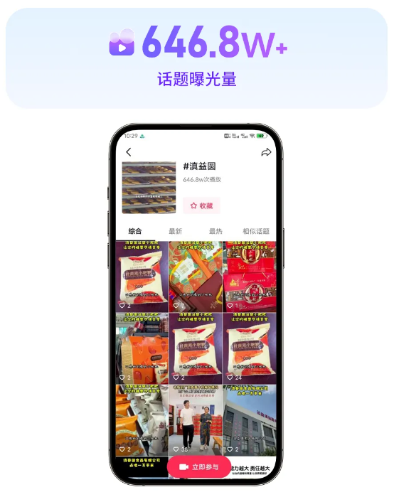 商家的需求就是将主推品“沾益小粑粑”推出去,小魔推矩阵能力就是通过发布足够多的视频形成视频矩阵,从而获得高曝光,即让更多的消费者看到该产品,从而通过视频种草、下单。因此商家通过小魔推发布了800多条视频,总播放量达到47万+次,创建的品牌话题曝光量达到646.8万+次。