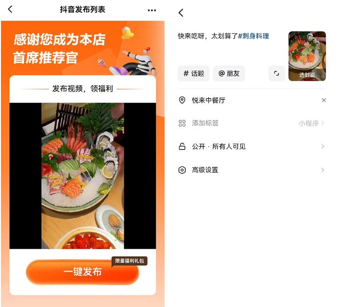 小魔推扫码就能发布视频,不需要用户拍摄剪辑,简单步骤就能帮商家发布一条带有门店的宣传视频,这个优势能帮商家在短时间内就发布大量的宣发视频,大量的视频被发布出去就意味着大量的流量曝光,将能被更多的人看到。