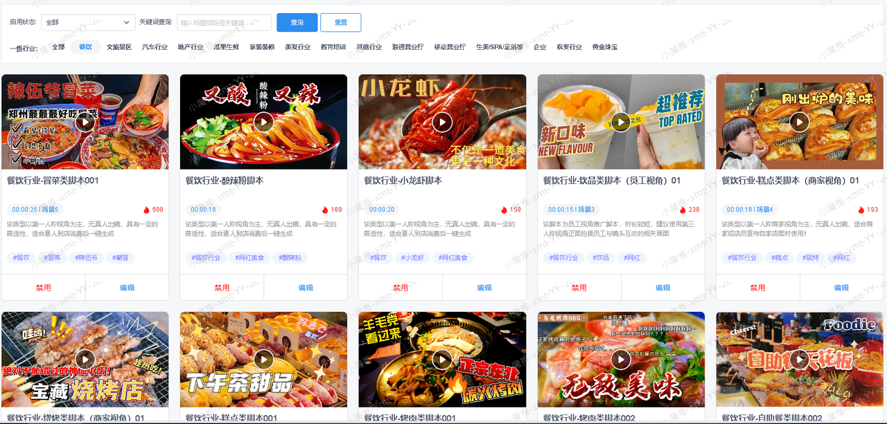 小魔推后台有大量的创作脚本,包含餐饮、文旅景区、汽车行业、地产行业等各行各业通用爆款视频模板,大家可以直接在模板中套用自己的内容素材,即可快速复刻出高流量高曝光的爆款短视频,拿到更优的结果。