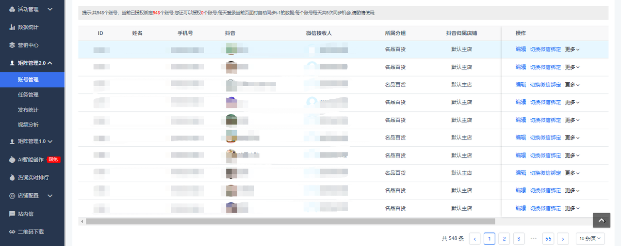 小魔推AI矩阵管理功能,可以帮商家实现账号统一管理,统一发布视频任务,各个账号之间内容实时同步。除此之外,还能对账号和视频任务进行定时定点定人发布,一人就能掌控多账号运营;后台一键查看所有账号视频发布结果,进行数据复盘,及时调整内容和发布。