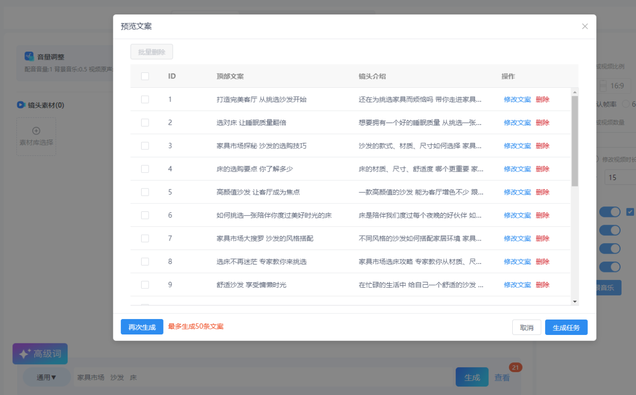 小魔推的AI智能写作能力,借助AI能力,输入关键词就能批量生成高质量文案,帮助解决脚本创作的难题。
