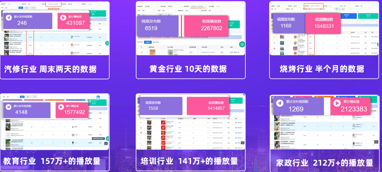 5、行业案例便宜矩阵不能适应所有行业的需求,小魔推AI短视频矩阵系统合作伙伴4000多家服务商,服务了55万的商家,服务内容除了提供给合作伙伴餐赞运营资料包,包括筛选商家、对接话术、市场服务价格表、对接商家合同等,其次还包含专业的售后群365天7x12小时的多对一服务,以及全行业的营销案例全都送给你!