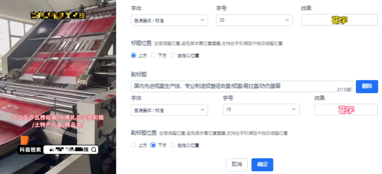 视频内容主打的是明晰,能最直白简洁的向潜在客户展示产品,如突出了生产线、制造产品的品类、品类的名称,让用户更明了看到生产的产品;并且时长也不长,保证完播率;再结合视频内的文案信息,比如在用小魔推时用花字去突出表现,最大程度的保证产品的信息快速、直白的进入到客户的眼中!