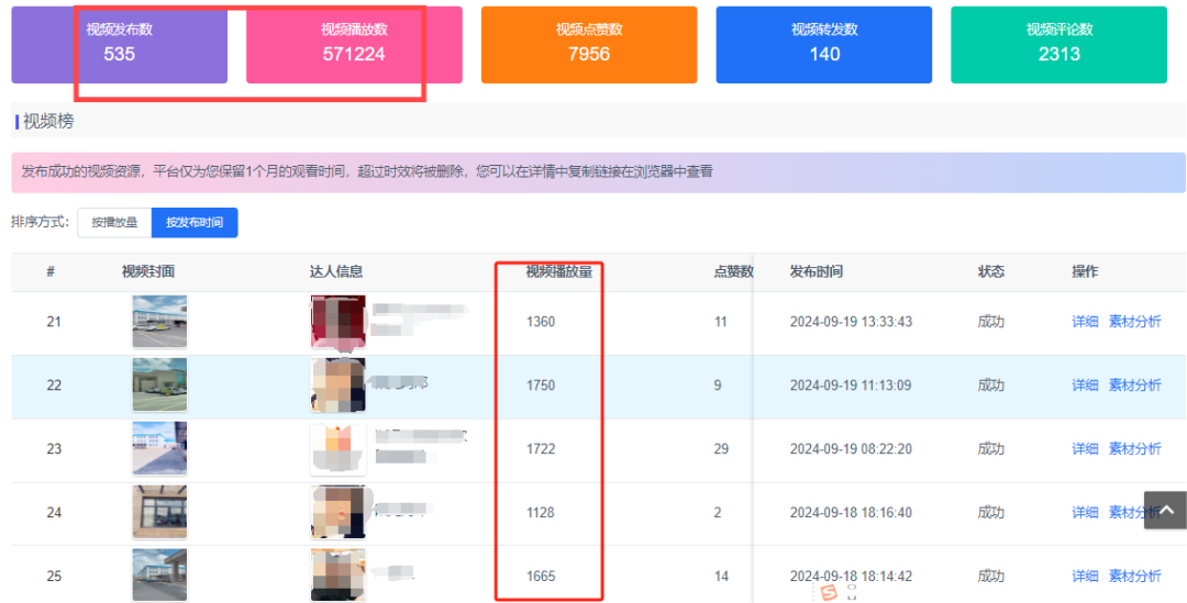 小魔推做矩阵营销,仅发布了535条视频,总曝光量就达到了57万+次,平均单个视频曝光量达到1068次。