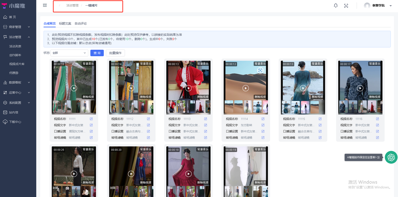 小魔推矩阵系统,一个人就可以完成短视频的创作。不需要招剪辑、不需要找文案、不需要招主播,只需要拿着一部手机对着你的门店或者产品拍大量的素材,上传到小魔推的后台,就可以输出带有话术、音频、贴纸且挂载POI链接的爆款短视频,还能一键上传到抖音、快手、小红书、视频号等热门平台。