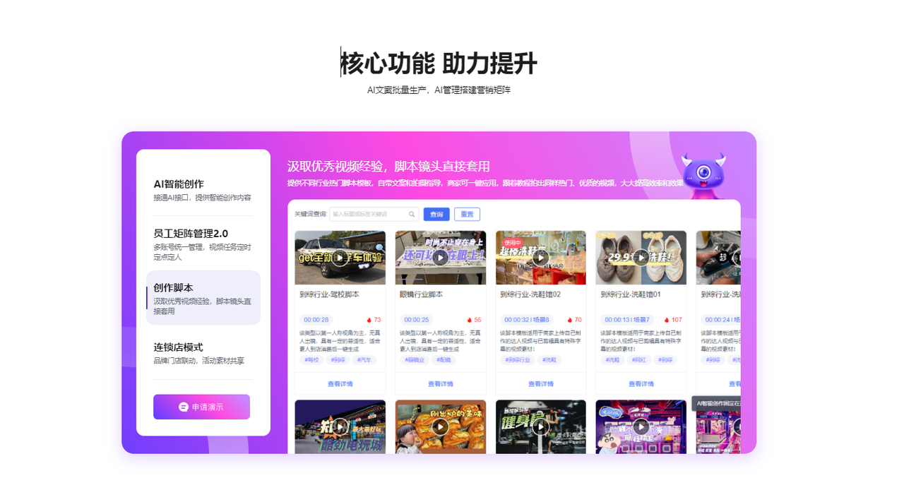 如何既保持创意的独特性,又保证内容精准,数据运营又高效。大部分商家创作出的短视频,创意千篇一律,效果差,投入多却收效少。小魔推矩阵工具让你轻松解决这些问题!它不仅能快速生成差异化内容,还能在多个平台上精准布局,充分利用平台优势,个性化推送内容。更重要的是,强大的数据分析功能帮助商家实时调整策略,让品牌保持长期竞争力,彻底告别低效运营!
