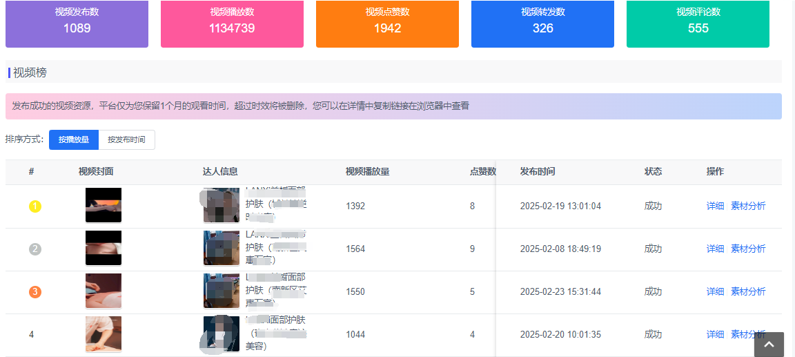 最终,「美颜XX」大胆突破常规,摒弃以往仅靠自身运营抖音单一账号的方式,选择借助小魔推开展矩阵式营销。品牌重新精心策划活动并严格执行方案,仅通过小魔推发布1000多条视频,总播放量便高达113万+次,成功带动店内GMV提升 240%,实现了华丽转身 。
