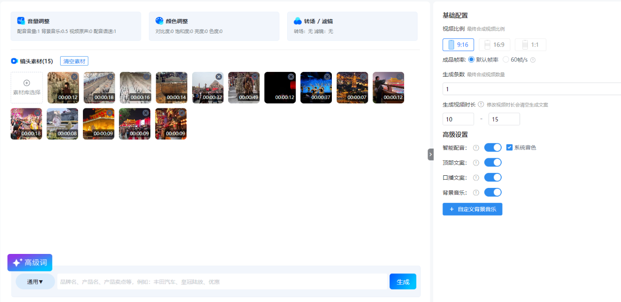 1、高效的短视频素材采集与批量生成景区只需利用小魔推采集2 - 3秒的短视频素材并上传至后台,该工具便能自动生成大量高质量视频。这一过程极大地降低了视频制作的成本与时间,让景区无需为专业制作团队和漫长制作周期而烦恼。