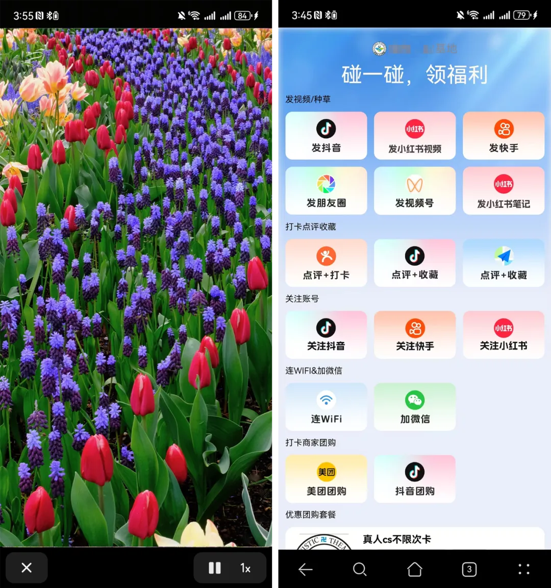 1、碰一碰,生成内容: 顾客只需用手机轻轻一碰,即可自动生成专业级的探店视频或图文,分享到各大社交平台。