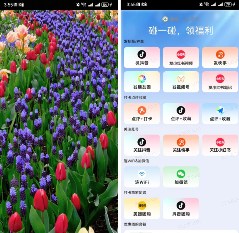 全网宣传,省时省力: 不止抖音,还能一键分享到小红书、快手、朋友圈...顾客碰一下,就能帮你把店铺的优惠活动、特色产品发到各大平台,让更多人看到!