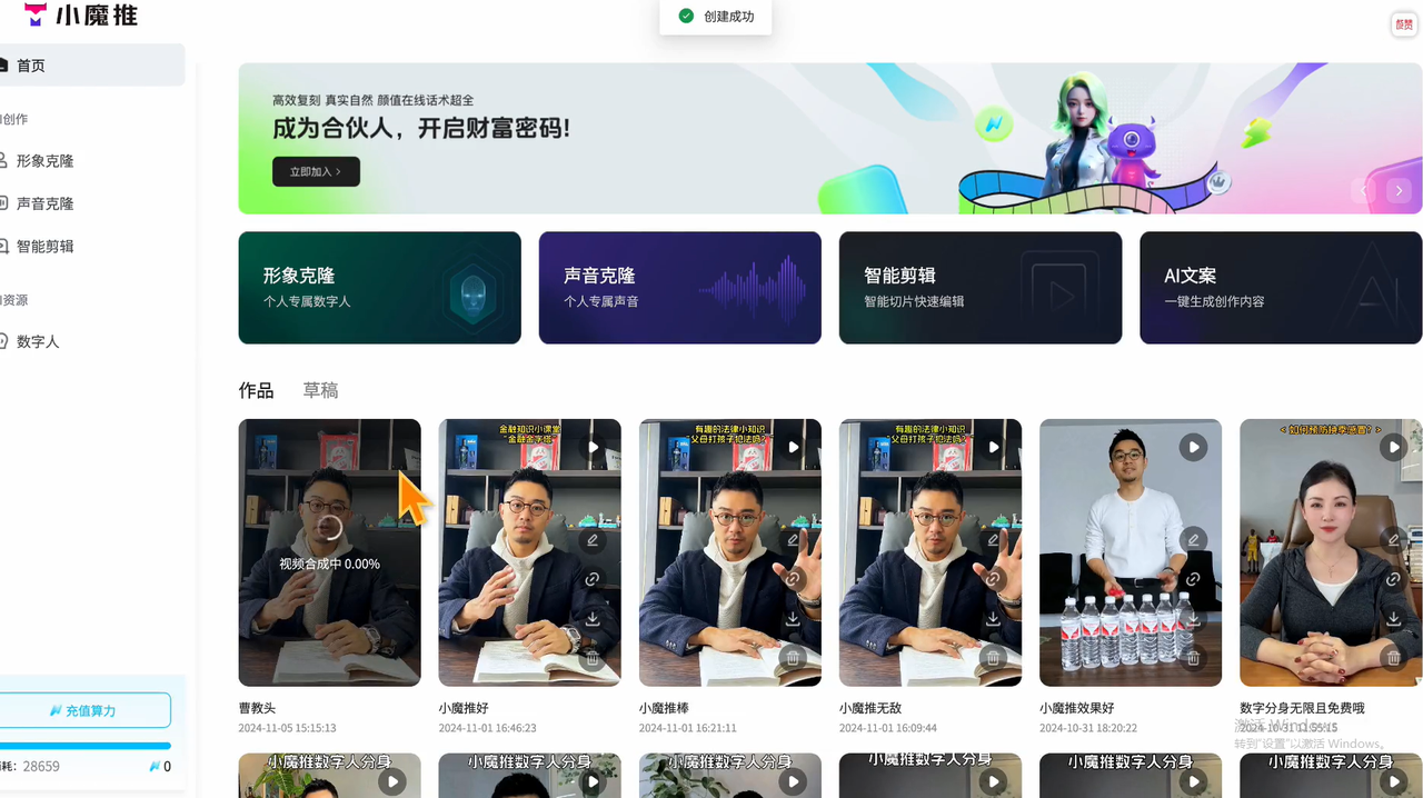 一、小魔推AI数字人:3分钟上手,日产百条视频,抢占流量先机小魔推AI数字人采用先进的人工智能技术(如深度学习、多模态交互等),只需一次简单制作,您的数字人分身就能7*24小时不间断为您工作。彻底告别出镜难、场地限制、设备昂贵、制作周期长等传统视频制作难题。