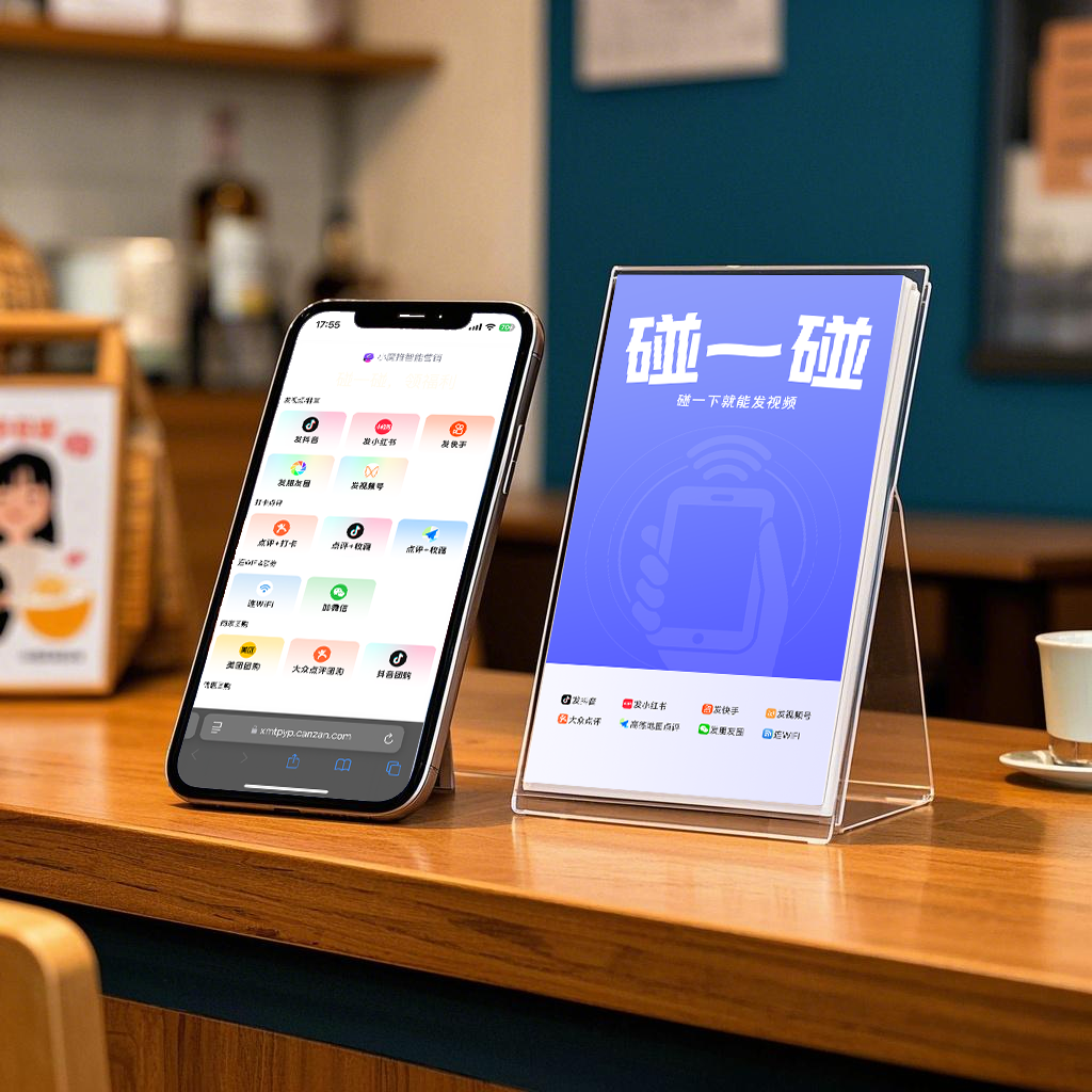 • 操作流程:用户触碰NFC标签后,AI自动生成一段15秒的探店视频,包含店铺环境、产品展示和用户评价,用户可直接分享至抖音。