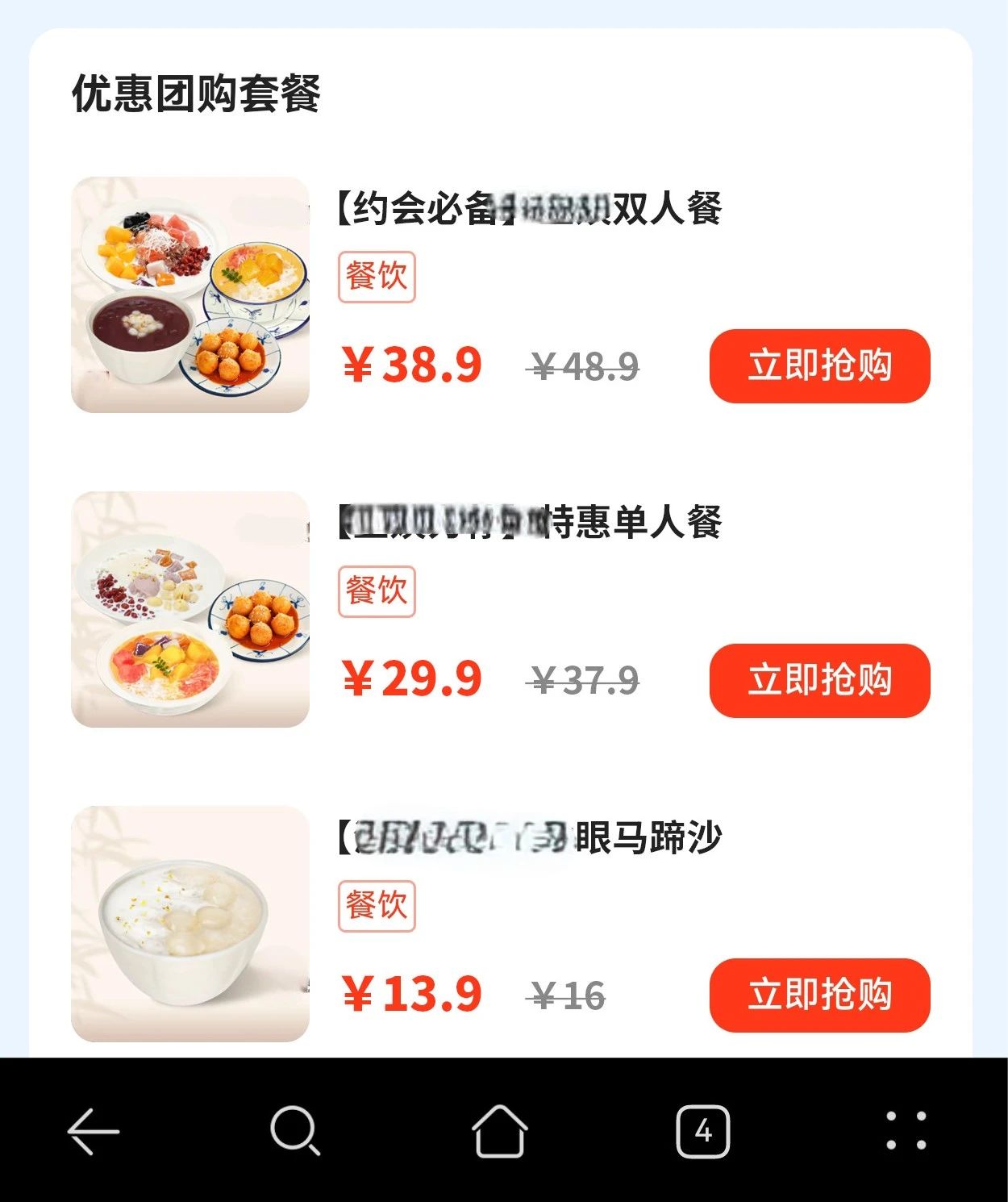 • 操作流程:用户触碰后,可直接跳转至抖音团购页面,购买甜品糖水套餐。