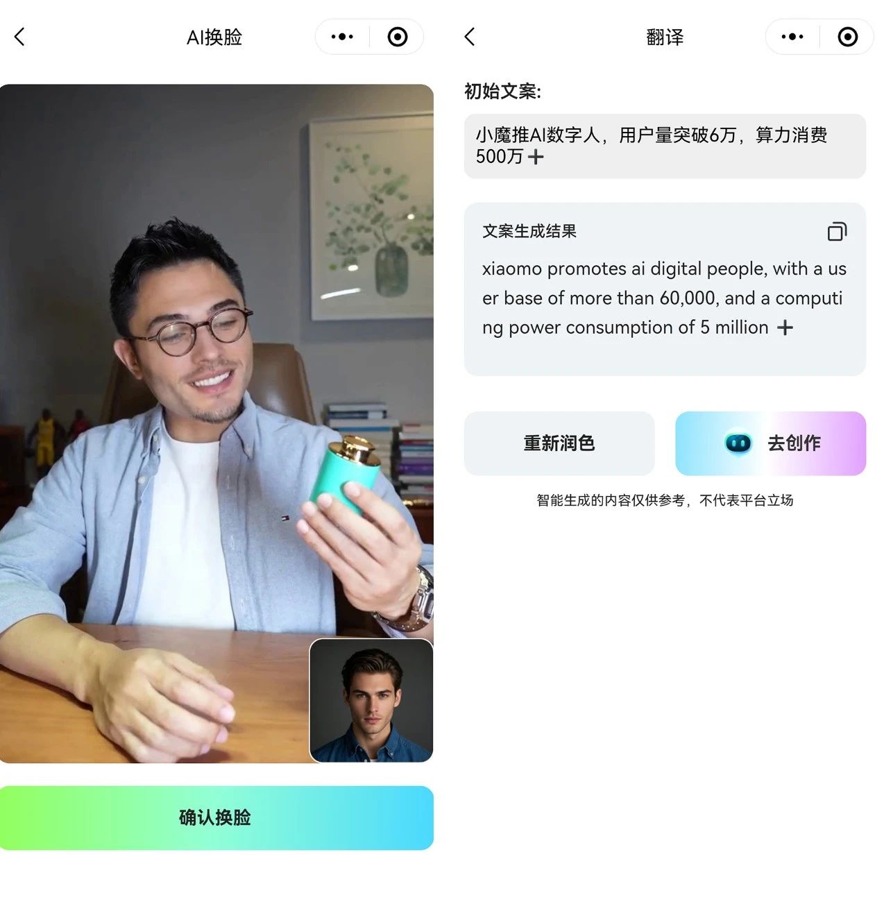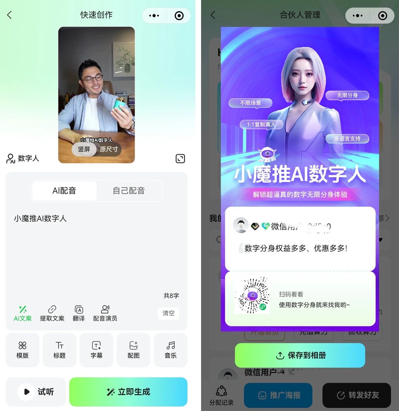 口碑驱动,裂变增长: 始终将用户体验放在首位,凭借卓越的产品性能与贴心的服务赢得用户信赖。用户的自发推荐与分享,形成了强大的口碑效应,成为用户量指数级增长的关键推力。凭借强大的AI技术内核、覆盖广泛的应用场景以及精准有效的市场打法,小魔推数字人在短短3个月内便交出了用户量破6万、算力消耗超500万+的亮眼答卷,实力领跑数字人赛道。展望未来,小魔推将持续创新,不断优化产品与服务,致力于为更多企业和个人用户提供更智能、更便捷的数字人解决方案,共同迎接并引领波澜壮阔的数字化新时代。