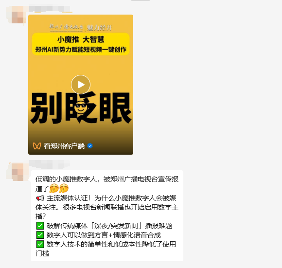 最近,原本相对低调的“小魔推数字人”,因获得郑州广播电视台的宣传报道而引发关注!这并非个例,越来越多的电视台、短视频博主,包括一些新闻联播节目,都开始引入数字主播。