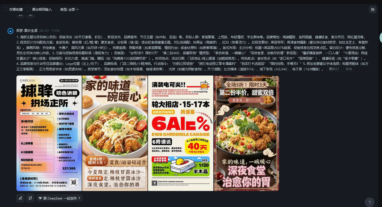 二、deepseek+即梦AI,一键生成营销海报以前做海报花钱找模板,现在你只需要这对组合:deepseek+即梦AI。