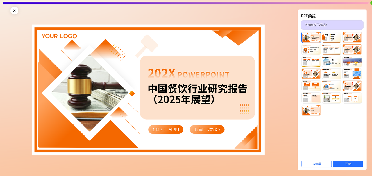 5、搞定!Kimi 会自动为你生成一份完整的 PPT。体验一把“老板”指挥的感觉!