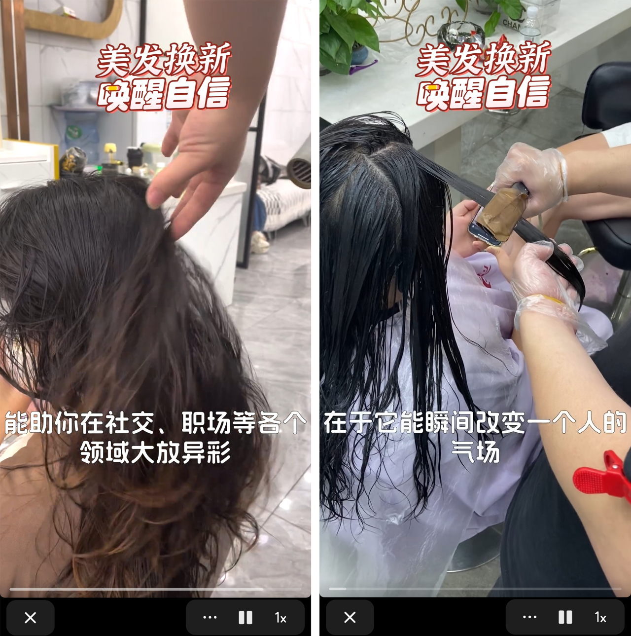 将"29.9元洗剪吹"服务拆解成6个步骤拍摄,如:发型师专业沟通过程、精细修剪过程、最终造型展示等。并借助AI自动生成教程版、促销版和故事版三种内容, 如:【天河区必试】29.9元享总监级洗剪吹+赠品!再搭配挂载门店POI地址,最终使到店率提升20%。