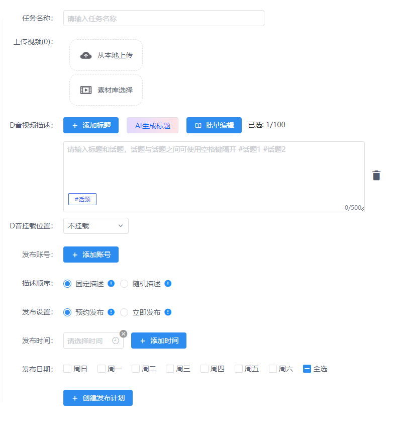 • 智能发布:根据平台流量规律自动安排发布视频、账号和时间;