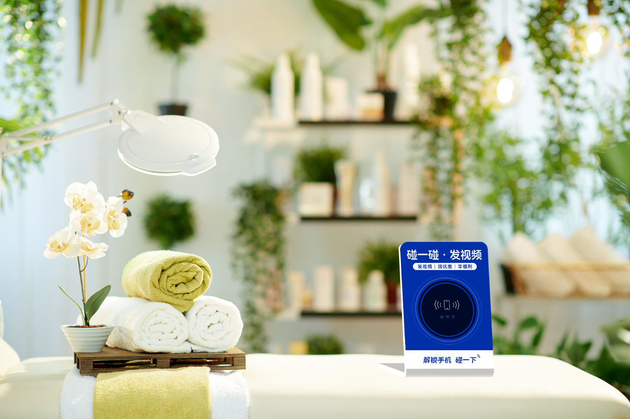 - 全场景覆盖:台卡、墙贴、菜单等物料植入NFC芯片,用户扫码即可触发互动(如领取优惠券、发布带定位视频)。