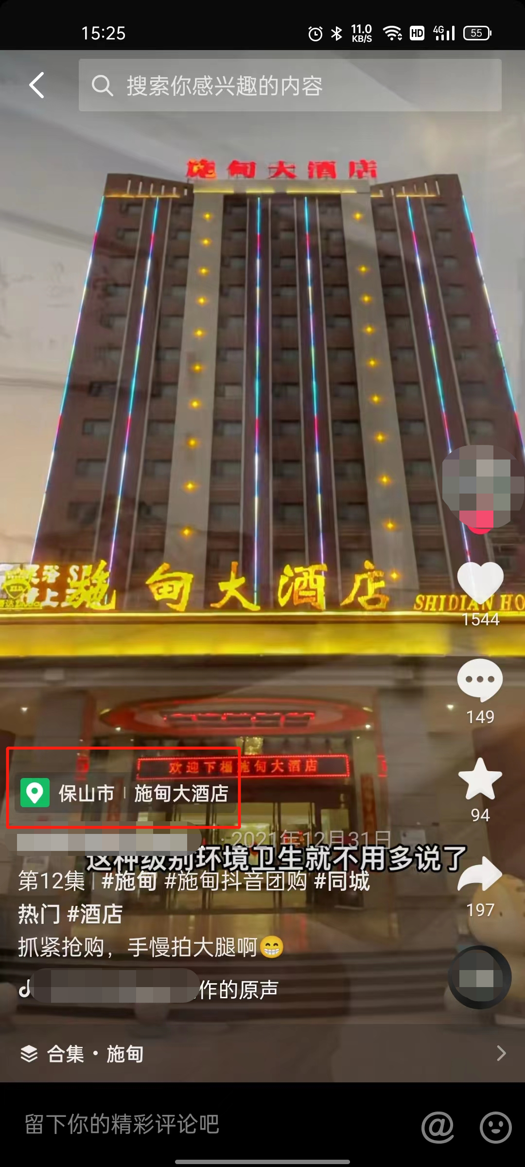 施甸大酒店是在当地县城排行前三名的老牌酒店,品牌本身自带流量,是当地的头部商家。