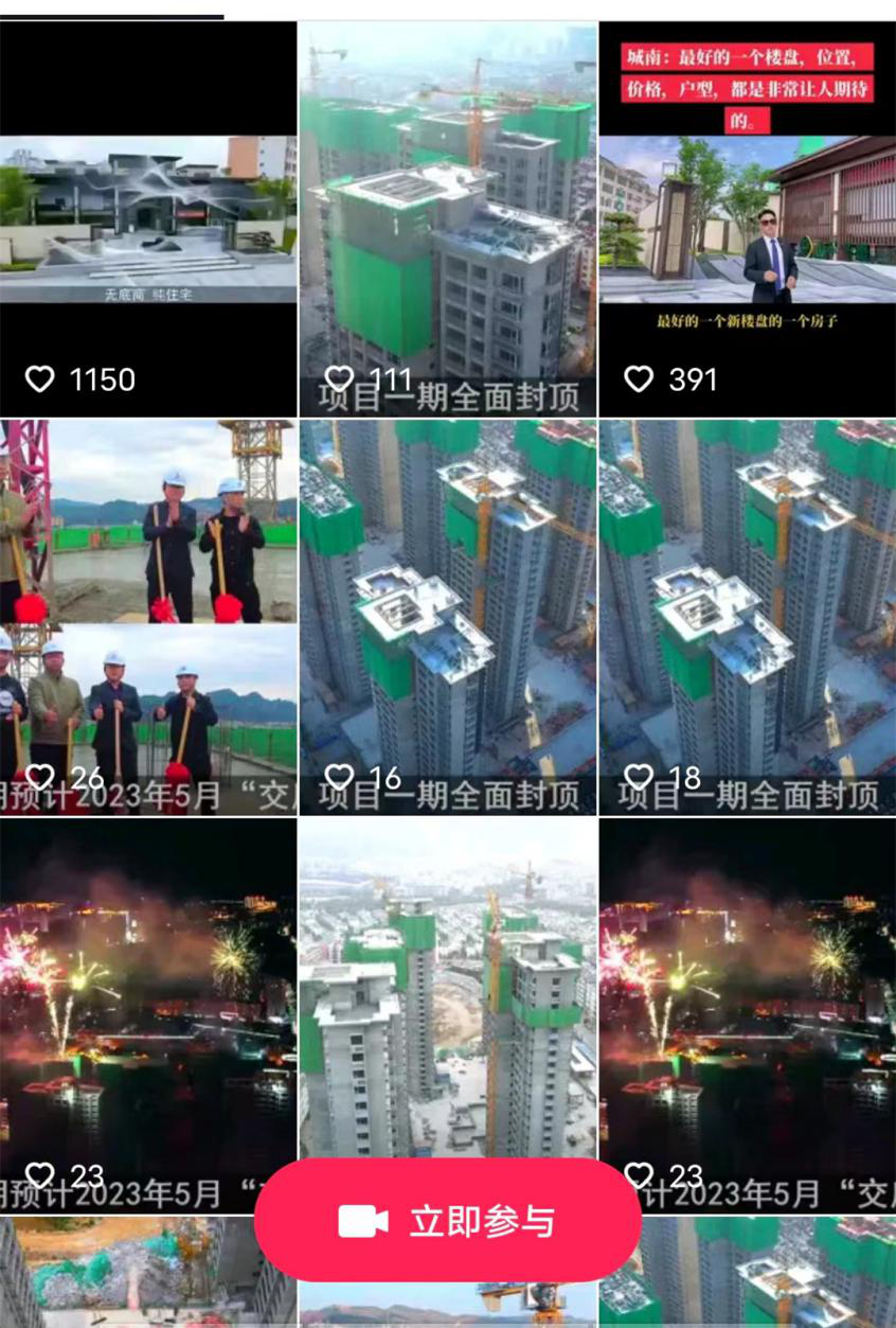 当下,短视频营销可谓是越来越火热,而该房地产商家也看到了这一趋势,并抓住了这一宣传渠道,不仅开通了商家官方短视频账号进行活动的宣传,更重要的是带动顾客一起“玩”了起来。