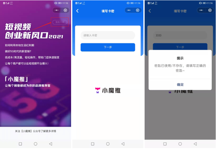 一键成片,自带特效,扫码发布的视频自动匹配特效模板,点击发布可一键成片,特效画面使发布内容更丰富,更符合用户个性化需求;模板丰富,效果在线,特效模板库拥有大量的模板,可以满足不同视频发布用户和使用商家的需求,同时模板库会根据用户反馈和市场发展不定时更新,让发布视频紧跟热点元素;去除制作,提升效率,满足了用户发布视频画面单一的问题;自动匹配的功能去除了用户的制作流程,同时保证了发布视频的高质量效果,提升了用户及商家的发布效率和工作效率;随机特效,增强原创,小魔推优质的视频拼接逻辑,再加上随机拼接视频模板,使得发布视频的优质度更高,原创度也更高。