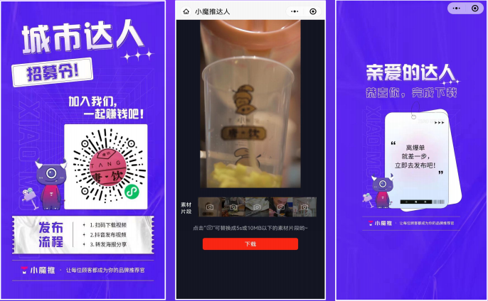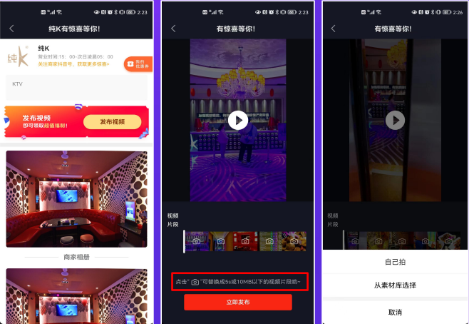 一方面增加了用户的互动性和再次对外宣传裂变的可信度,另一方面为商家素材库提供了更多素材,避免了视频的相似度。