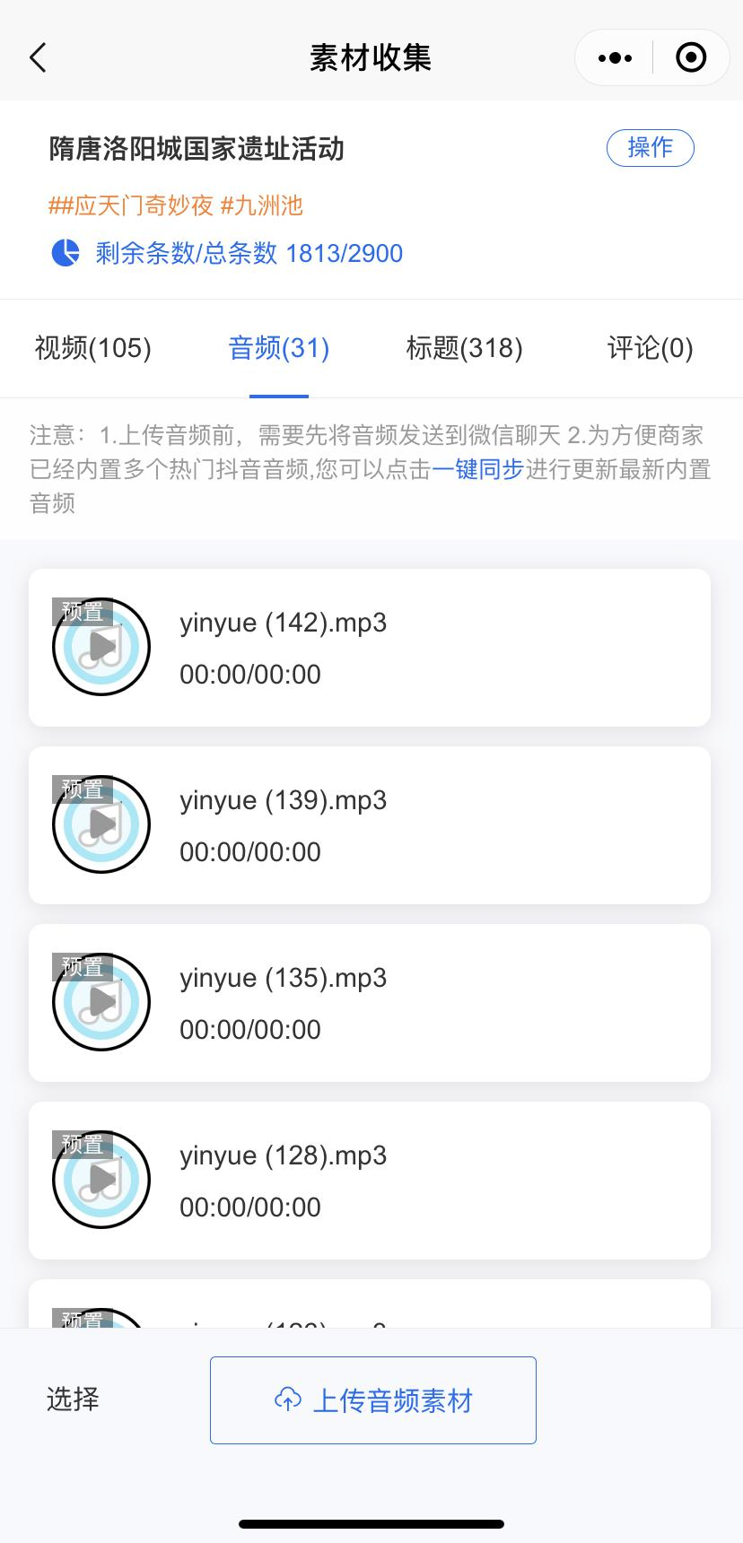 使用了短视频同城拓客工具—小魔推的商家会知道,系统后台拥有海量素材库,点击”一键同步“后,视频平台海量热门音乐会同步后台,为商家大大节省了时间,省去了很多精力,不用再”大海捞针“。